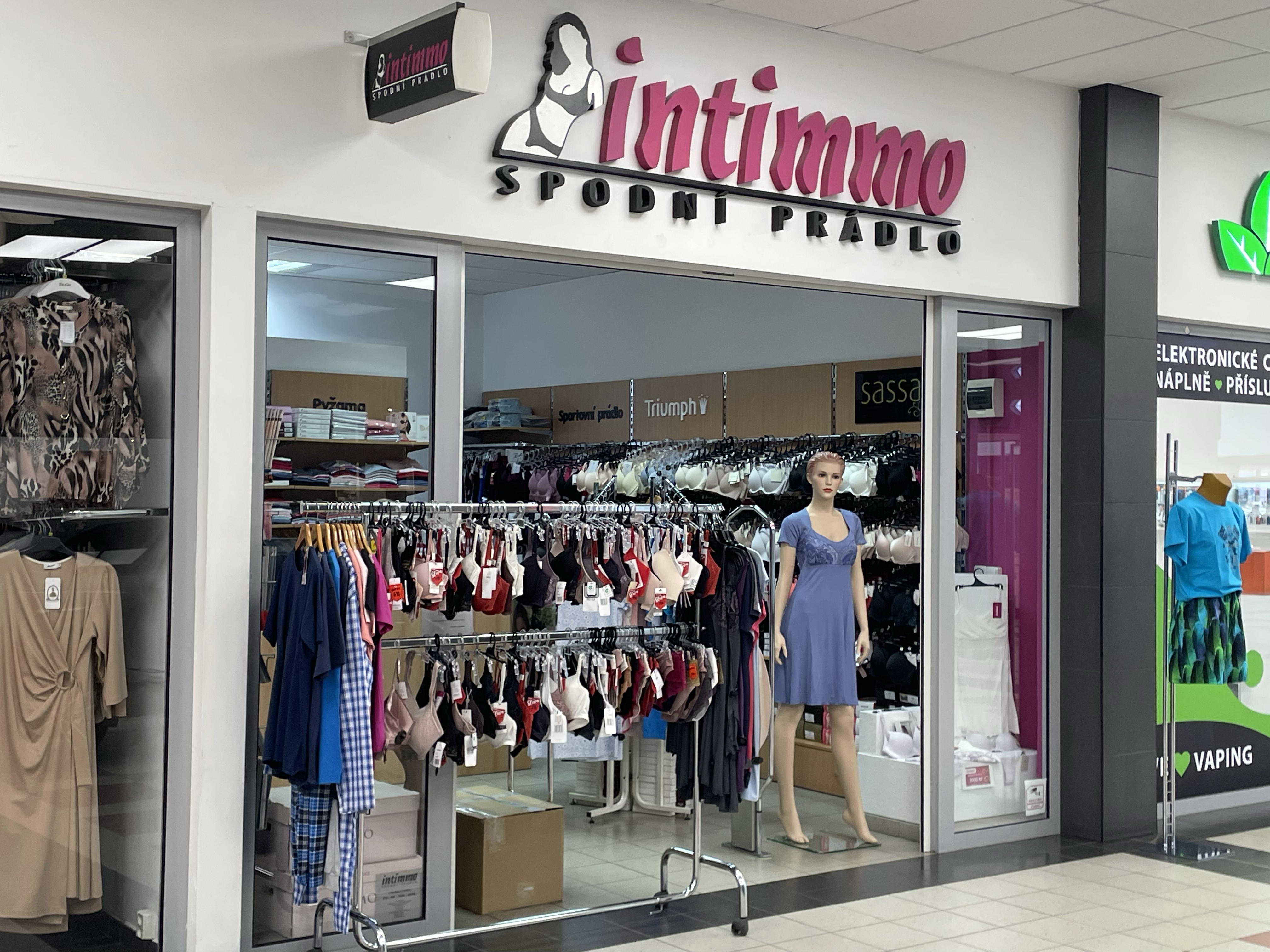 Filosofií firmy INTIMMO – spodní prádlo je maximální kvalita výrobků pro široké spektrum zákazníků. Pánská kolekce v sobě slučuje skvěle padnoucí střihy zajištující maximální pohodlí a sexy vzhled. Dámské kolekce obsahují podprsenky až do vel. G. Zvláštní nabídku tvoří vzorové punčochy a noční program, kterou reagujeme na každoroční módní trendy vzorů a barev . INTIMMO – spodní prádlo představuje nejširší nabídku dámského a pánského prádla na Moravě. Velmi žádané je bezešvé prádlo rozmanitých barev a střihů Nabízíme široký sortiment prádla pro ženy, které se chtějí cítit atraktivně a to i v případě, že nemají velikost „S“ Nechte se okouzlit, svést a poté si vyberte v prodejnách.